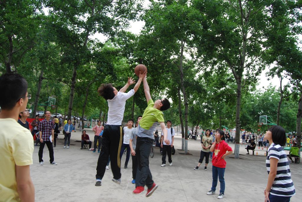 为响应国家“三走”号召,贯彻落实阳光体育活动,4月25日,数计学院在篮球场举办了趣味篮球赛半决赛和决赛,复赛中胜出的四个班级参加了本次比赛。