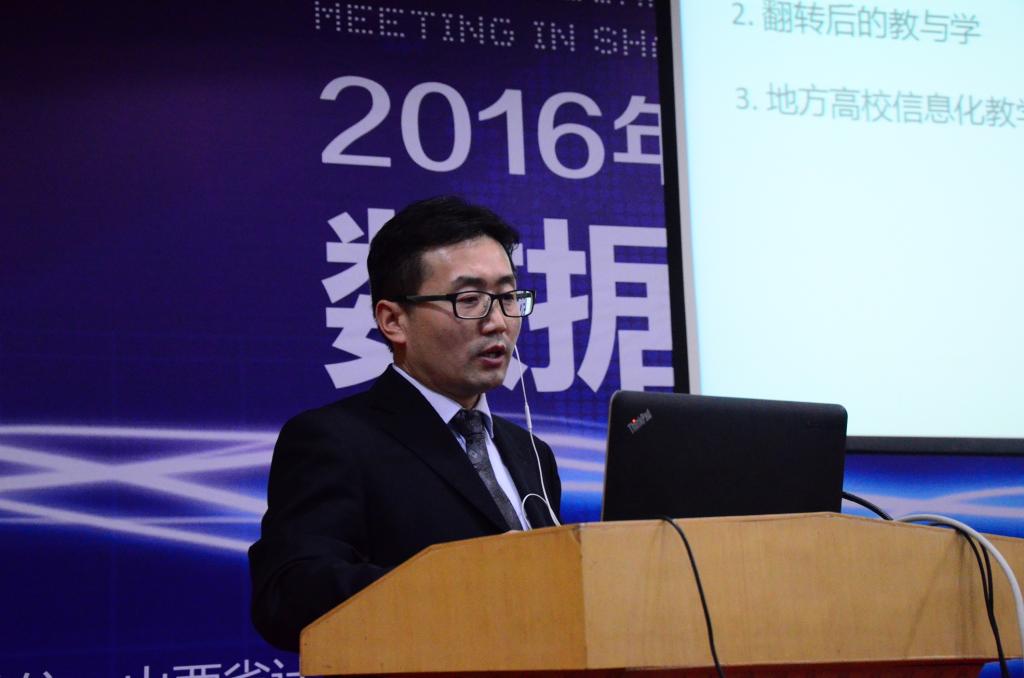 第三场由高校大学计算机课程教学指导委员会副主任、北京理工大学李凤霞教授做《在线教育推动下的教学改革与发展》报告。她报告说,如今全世界各高校开展了MOOC课程,并在急速的发展中,而我省各高校也正在抓紧开设MOOC课程中。.新一轮教学改革中,MOOC课程能够给同学们提供学习的资源,并能按需分配,使学生实现跨时空学习,师生共同参与其中,让数据支持建设发展。在大学计算机课程建设体验中,MOOC联盟工作组用多种形式构建课程框架,用专业的队伍建设特色优质课程。李教授着重建设的是虚拟实验课程体系,以云平台服务支持在线课程,将他们运用进校园,建立校内实验工厂,让在线教育推动的教学改革与发展。