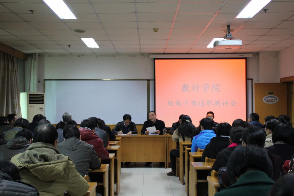 2016年12月28日下午四点,数计学院按照校党委的部署在科学会堂A710会议室召开处级干部述职测评会。数计学院全体教职工、各年级学生代表出席了此次会议,校考核组派去人参加会议,会议由院党委书记王成喜主持。