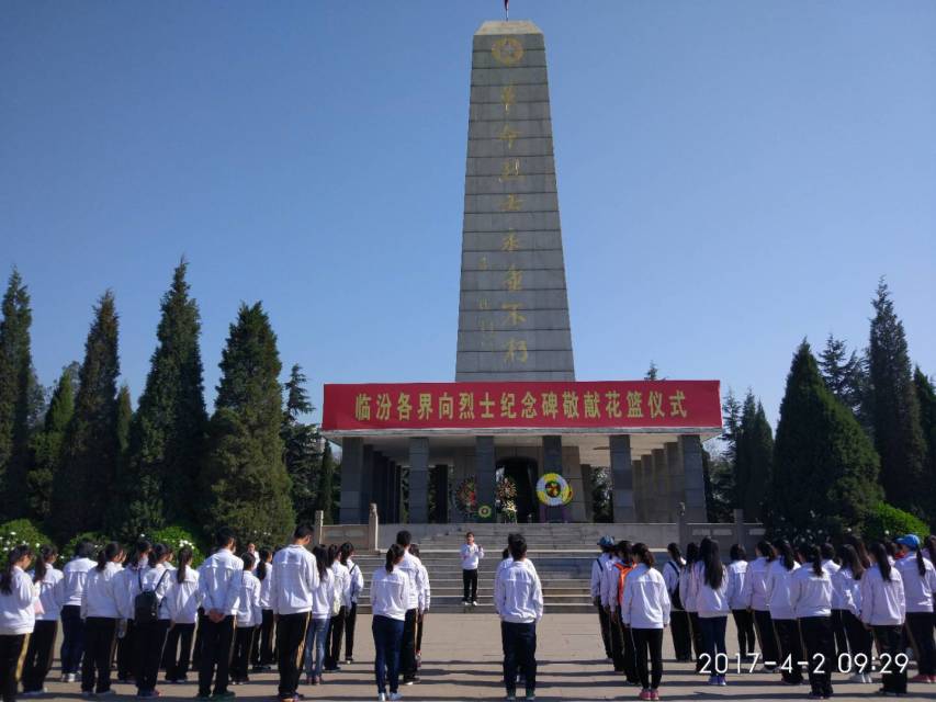 为缅怀革命先烈,教育学生感念先辈恩德,传承先辈遗志,弘扬民族精神,值此清明节来临之际,我院青协联合236爱心社于2017年4月2日上午在临汾烈士陵园开展了以“缅怀英勇先烈 弘扬革命精神”为主题的烈士陵园扫墓纪念活动。