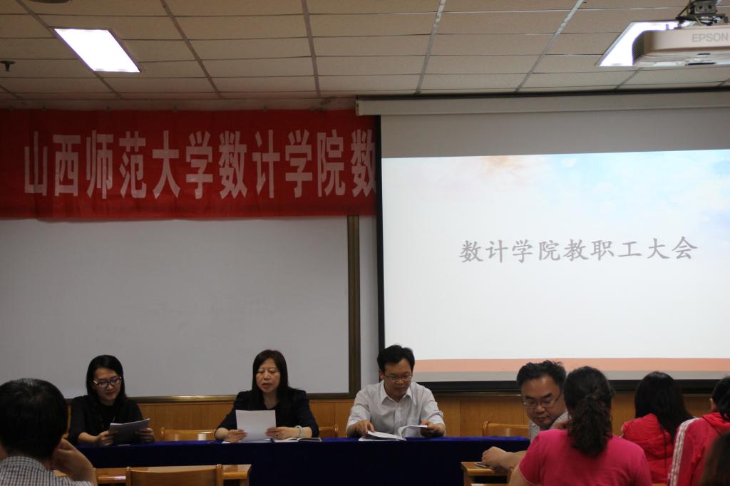 2017年5月19日晚,数计学院全体党员在科学会堂A710报告厅召开了“维护核心、见诸行动”主题教育学习交流会议。院党委书记郝红霞、院长史建红、各党支部书记及全体教工党员参加了会议。