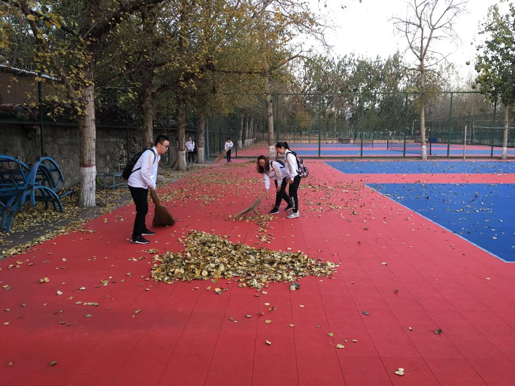 活动一开始,我院志愿者立即进入工作状态,目的明确,分工合理。一部分志愿者清理落叶、食品包装袋等垃圾,另一部分志愿者进行垃圾收集,志愿者相互配合,不放过校园里的每个死角。寒风吹过,刚打扫过的地面再次铺满了落叶,给工作的顺利进行增加了难度,但志愿者们毫无放弃之意,仍以认真的态度继续进行打扫清理。经过同学们的辛勤劳动,校园环境变得整齐有序。活动结束后,我院志愿者向环卫工人表示敬意,为他们拍摄视频,对他们净化校园、保护环境的行为进行宣传,希望更多的人了解体会环卫工人的辛苦和不易,在爱护校园环境中贡献自己的一份力量。