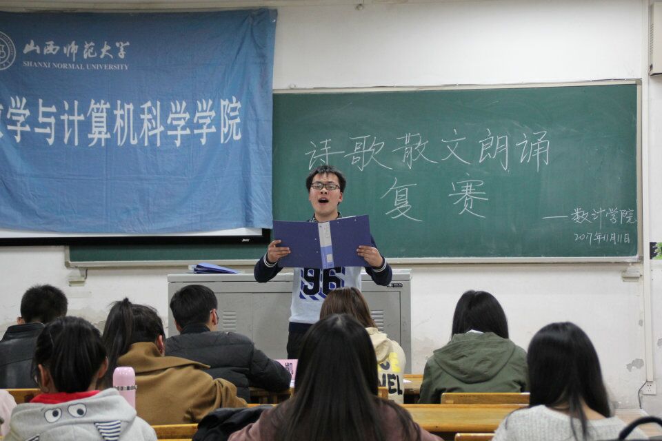 为深入贯彻党的十九大精神,提高大学生的政治觉悟,增强同学们爱党爱国之情,11月11日晚7时,我院在10310教室举行以“不忘初心、牢记使命”为主题的诗歌散文朗诵比赛复赛,本次朗诵比赛得到我院学生的积极响应,经过初赛的激烈角逐,有35名学生成功进入复赛。