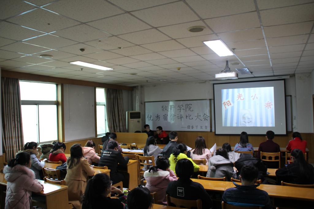 为创建温馨舒适、文明和谐、健康向上的宿舍环境,打造数计学院宿舍品牌,11月19日下午三时,我院在科学会堂A710会议室进行了优秀宿舍评比,各年级各班生活委员参加,活动由生活部部长柴亚倩主持。