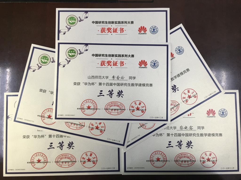 近日,“华为杯”第十四届中国研究生数学建模竞赛颁奖大会在西安交通大学举行。数计学院研究生张晓峰、张晓露、李香玲团队在周正勇副教授的指导下喜获三等奖,这也是我校首次参加这一面向研究生的全国顶级赛事。