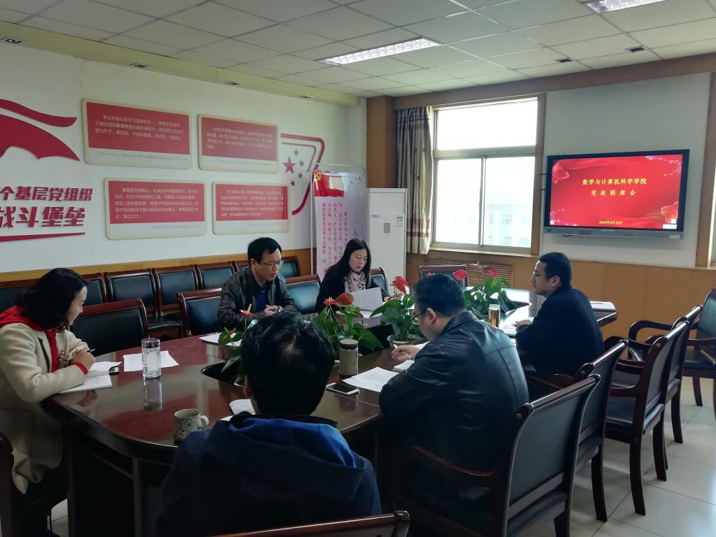3月15日上午9时,数计学院党委中心组在科学会堂A705会议室召开党内法规制度专题学习会议。学院党委书记郝红霞、院长史建红、党委副书记杨亚东、副院长安立坚、朱红康、王洁参加了会议。会议由院党委书记郝红霞主持。