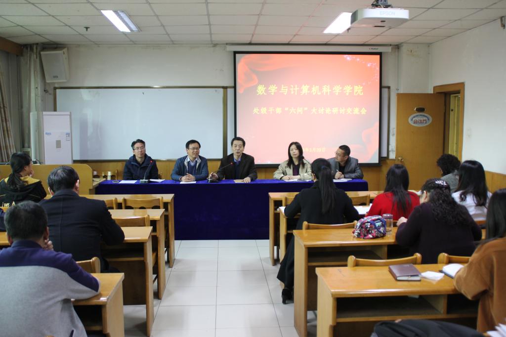 3月20日,数计学院在科学会堂A710召开领导班子“改革创新、奋发有为”“六问”大讨论交流研讨会。校纪委书记刘奎生、副处级纪检员焦绿青出席会议。院党委书记郝红霞、院长史建红、党委副书记杨亚东、副院长安立坚以及全体教职工和学生代表参加了此次会议,会议由院党委书记郝红霞主持。