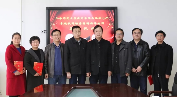 2019年3月11日下午,我院在临汾第一中学校举行“卓越教师培养计划”特聘指导老师签约仪式。院长史建红、副院长朱红康、党委副书记杨亚东及部分学生代表,与临汾一中校长张杨管、副校长陈建平、教导处主任支刚华、刘跃梅老师、古跃宏老师出席了签约仪式。