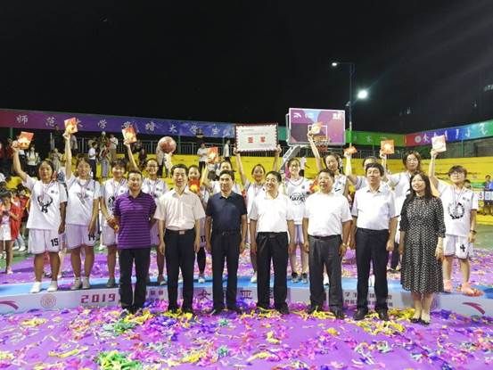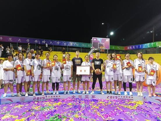 2019年安踏大学生篮球联赛颁奖典礼在灯光篮球场隆重举行。数计学院女篮过关斩将,荣获本届篮球赛亚军。