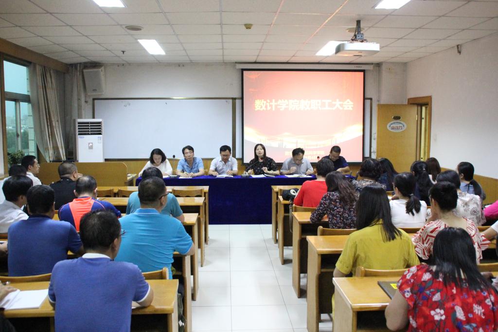 9月4日晚7时,数计学院在科学会堂A710报告厅召开全院教职工大会。院党委书记郝红霞,院长史建红,院党委副书记杨亚东,副院长安立坚、朱红康、王洁出席会议,全院教职工参加。会议由院党委副书记杨亚东主持。