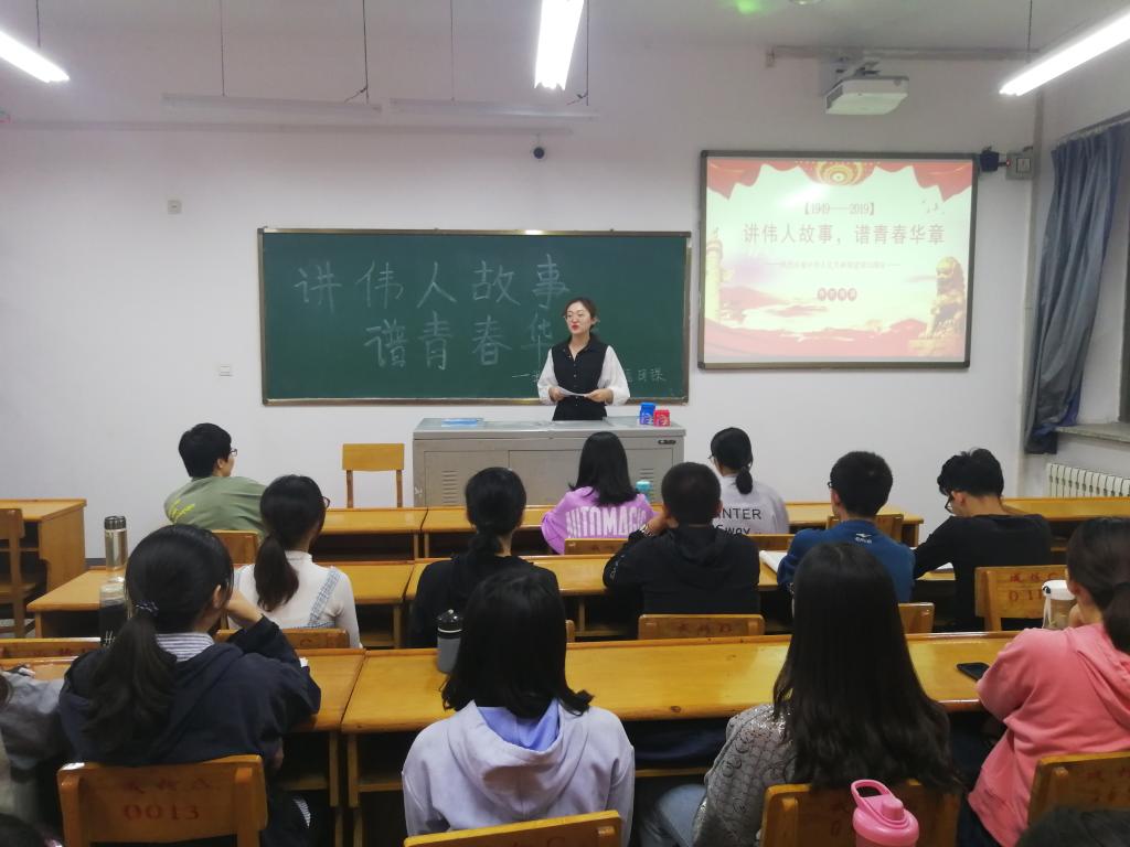 为了庆祝共和国七十华诞,弘扬以爱国主义为核心的民族精神,在新时代新征程中谱写青春华章,9月20日晚7时,我院在12302教室举办了“讲伟人故事,谱青春华章”主题微团课活动,各团支部学生干部参加。