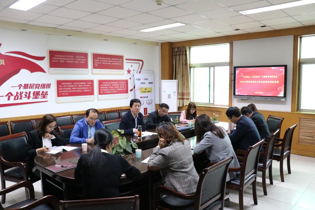 10月9日,校党委副书记高峰,学生处处长李三红,校团委书记霍其武一行五人来我院进行“不忘初心、牢记使命”主题教育调研,开展“学生文明素养养成与学生组织作用的发挥”的主题座谈。院党委书记郝红霞,院长史建红,学工组长杨亚东,各专职辅导员、教师代表以及学生代表等参加了座谈交流。