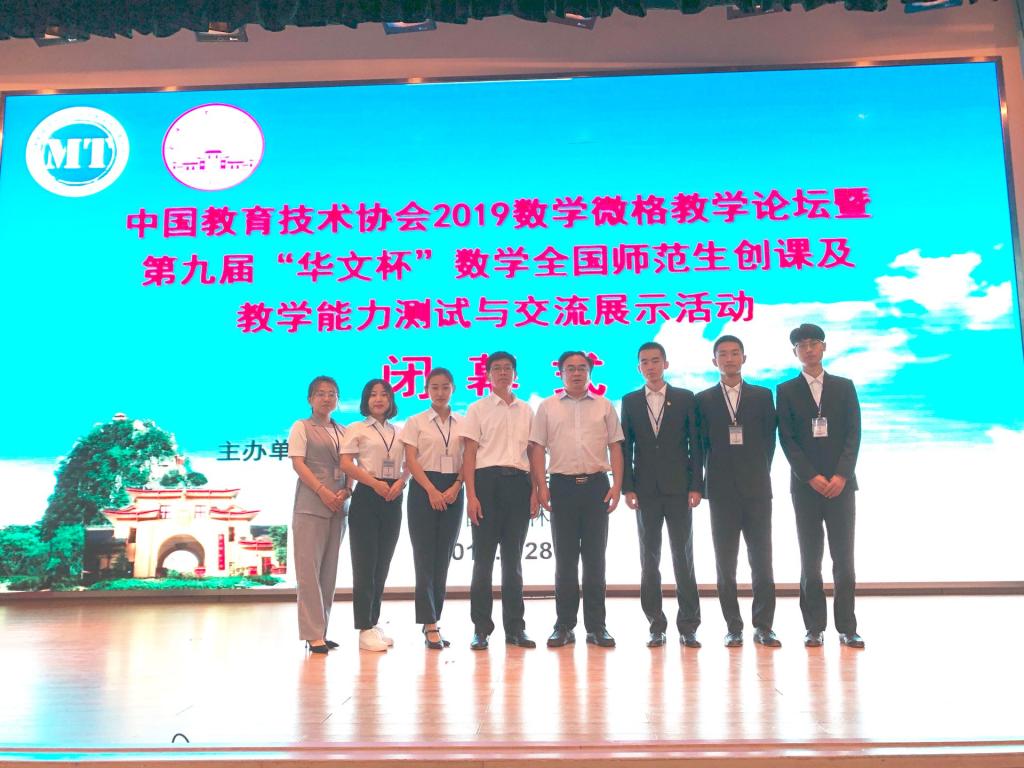 9月26日至29日,由中国教育技术协会微格教学专业委员会主办的2019年数学微格教育论坛暨第九届“华文杯”数学全国师范生创课及教学能力测试与交流展示活动在广西师范大学举行。来自全国近70所院校的300余名数学专业师范生参加比赛,我院6名学子在副院长朱红康、教师刘生芝的带领指导下,经过激烈角逐,最终喜获创课设计与展示和微课教育技能展示共十二个单项奖,其中一等奖3项,二等奖7项,三等奖2项。