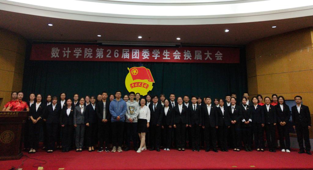 11月3日晚7时,我院在科学会堂二层报告厅举办了第26届团委学生会换届大会。校学生会副主席、校青协副主席、校社联学生代表、各兄弟学院学生会主席、数计学院第25届主席团成员以及第26届团委学生会全体成员参加了本次大会。