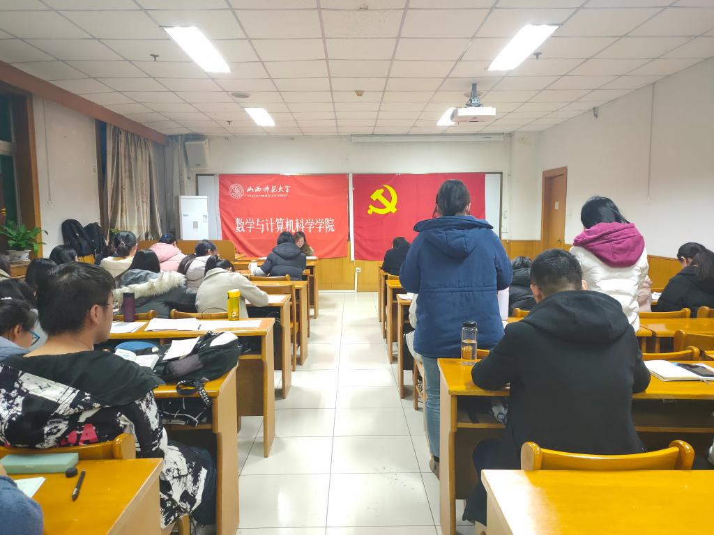 11月25日至12月5日,根据学校“不忘初心、牢记使命”主题教育办公室要求,数计学院各党支部完成了“不忘初心、牢记使命”专题组织生活会和民主评议党员工作。学院党委高度重视,认真安排,共召开院党委、党支部两个层面安排部署会议8场、会前集中学习会议8次、支委会7次、支部测评党员大会7场。学院党委书记郝红霞,院长史建红,院党委副书记杨亚东,院党委委员、副院长朱红康参加了各支部的专题组织生活会和民主评议党员会。