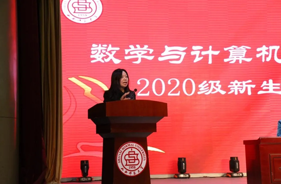新生见面会在庄严的国歌声中拉开序幕。郝红霞首先对新生们表示了热烈的欢迎,并从有高水平的好学科和好专业、有精心育人的好老师、有积极进取的好学长、有干事创业的好氛围等几个方面对我院学科建设、专业特色、师资力量、就业情况、学科实践竞赛和文体活动成绩作了介绍。她勉励新生要“下苦功夫、求真学问”“放下手机、拿起书本”“胸怀祖国、勇担责任”,牢记习近平总书记对广大青年“爱国、励志、求真、力行”的期望,心中有信仰,脚下有力量,肩上有担当,今日努力学习,明日报效祖国。