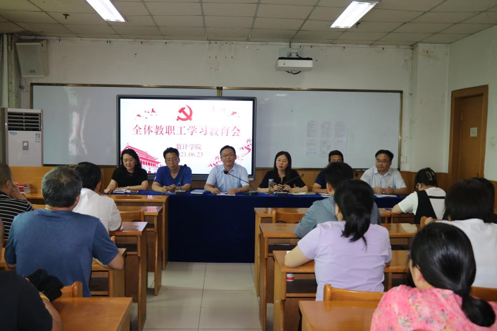 6月23日下午,数计学院在科学会堂A710报告厅召开本学期全体教职工大会。院党委书记郝红霞,院长史建红,副书记杨亚东,副院长安立坚、朱红康、王洁出席会议,全院教职工参加。会议由院长史建红主持。