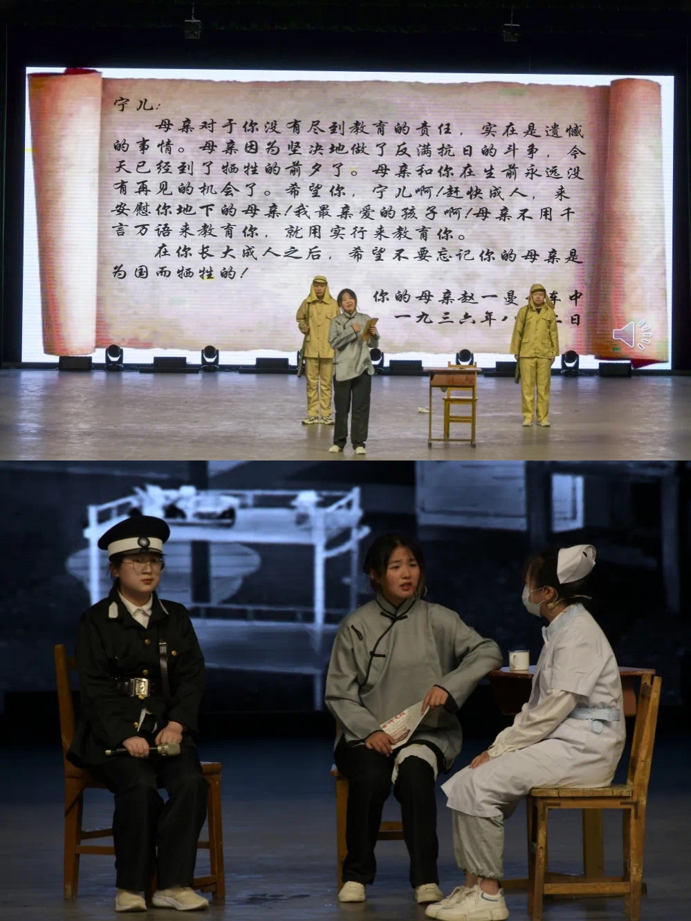 决赛采用积分制,共分三轮进行。在第一轮“先声夺人”中,我院学子根据所抽取的题目进行作答,展现了扎实的党史知识功底,获得了170分的优异成绩。在第二轮“共渡险关”中,面对紧张激烈的抢答环节,我院参赛选手反应迅速,相互配合,沉着应答,最终以220分的绝佳成绩顺利进入第三轮“忆史绎今”。在这一环节中,她们表演了情景剧《烽火英雄——赵一曼》,将革命英雄主义精神展现得淋漓尽致,她们的精彩表现也获得了在场观众的热烈掌声。最终我院参赛选手以312.77分的优异成绩获得党团知识竞赛一等奖。