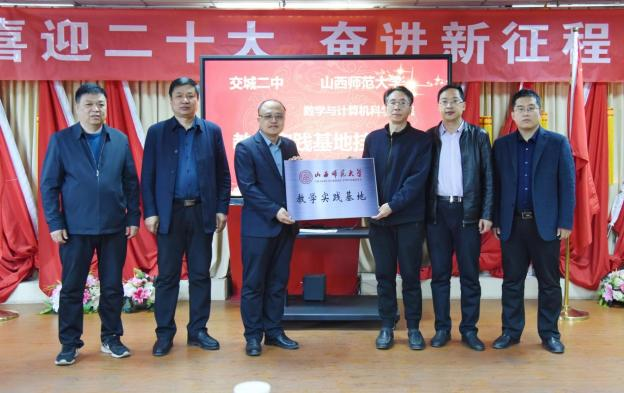 交城县教育科技局局长闫建明、交城二中书记刘继平、校长魏军军,数计学院院长安立坚、副院长王国涛、院长助理周正勇参加签约及挂牌仪式。