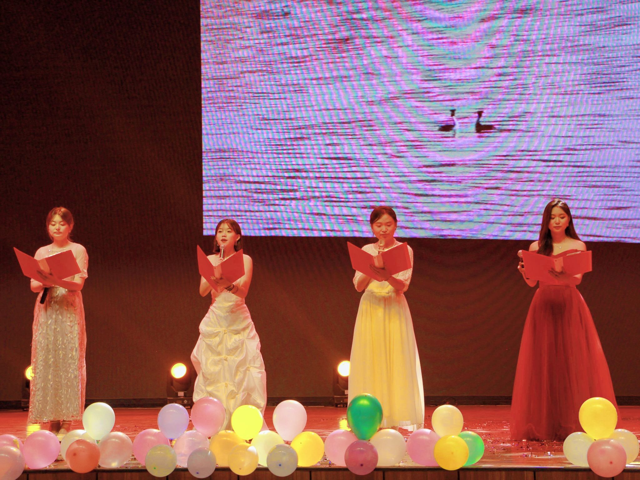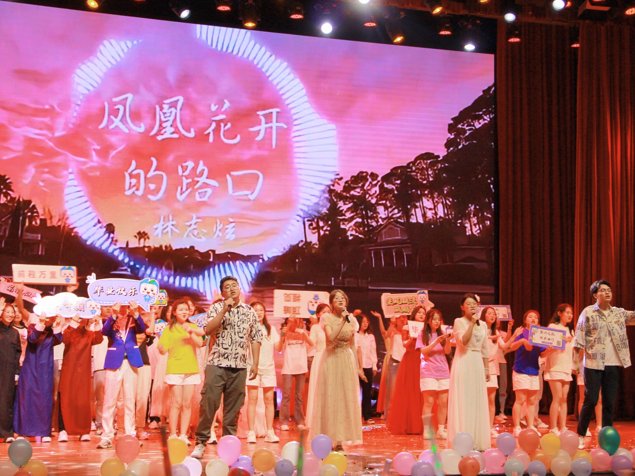 演唱结束,安院长向同学们送上寄语,对毕业生们表示了衷心的祝福,期望他们能够保持对梦想的追求和热爱,在未来的道路上不断努力,创造更加辉煌的人生。诗朗诵《永不落幕的青春》抑扬顿挫,情绪层层递进;老师们演唱的《祝你一路顺风》抒发离别与不舍,送上欣慰与祝福,让在场毕业生们感动不已。