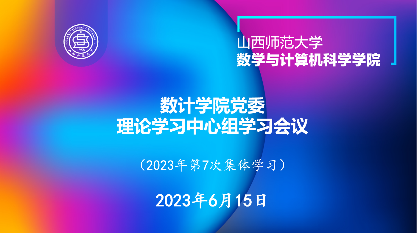 2023年6月15日,数计学院党委理论学习中心组召开2023年度第7次集体学习,学院党委理论学习中心组成员参加,院党委书记孙学虎主持。
