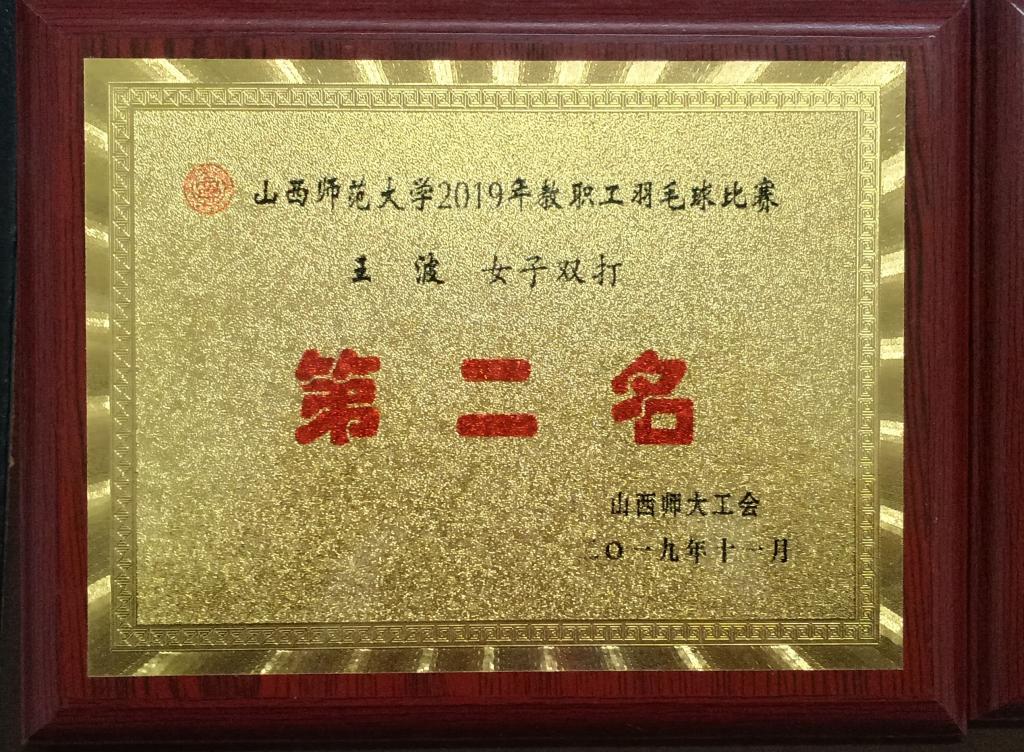 在校工会主办、体育学院公共体育部承办的2019年教职工乒乓球、羽毛球比赛中,刘生芝老师赢得乒乓球赛男子46岁以上单打第二名,李兰和王波老师赢得羽毛球赛女子双打第二名。