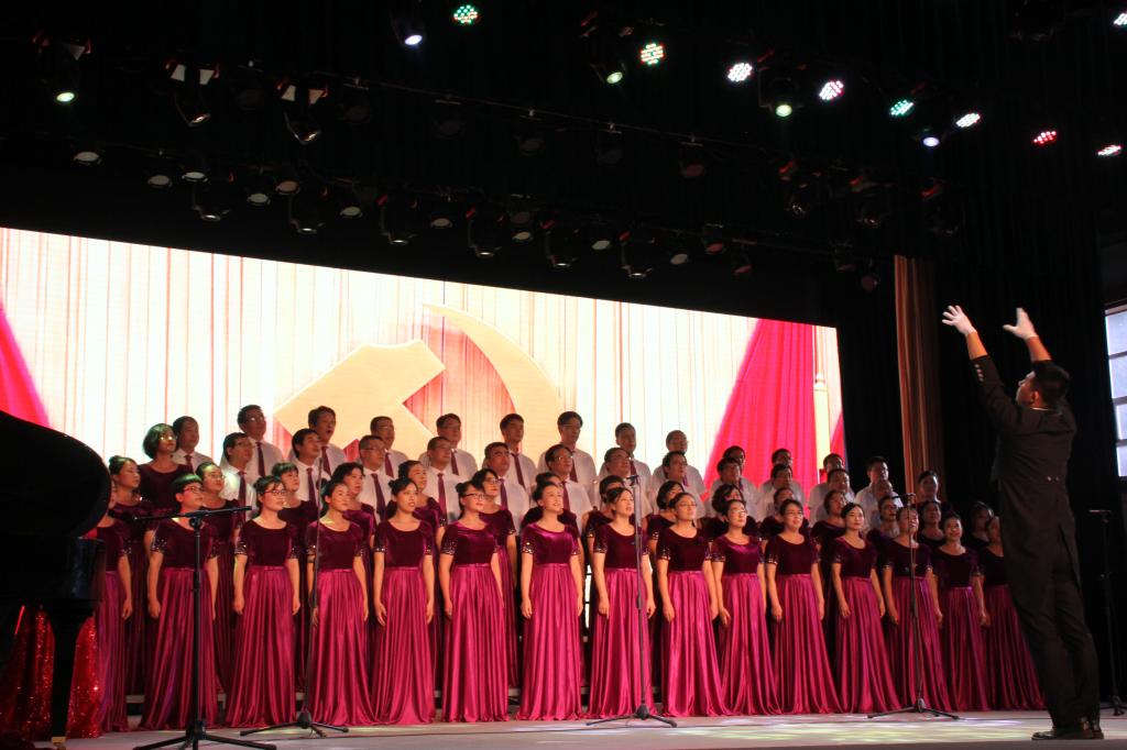 决赛场上,我院教职工精巧构思,将自己的特色与合唱完美融合,错落有致的和声、振奋人心的歌词、昂扬向上的精神面貌,表达了对祖国母亲最真挚的祝福。飞扬的歌声,吟唱难忘的岁月,凝聚心中奉献的情节;激昂的旋律,奏响时代的凯歌,回荡祝福不变的真切。