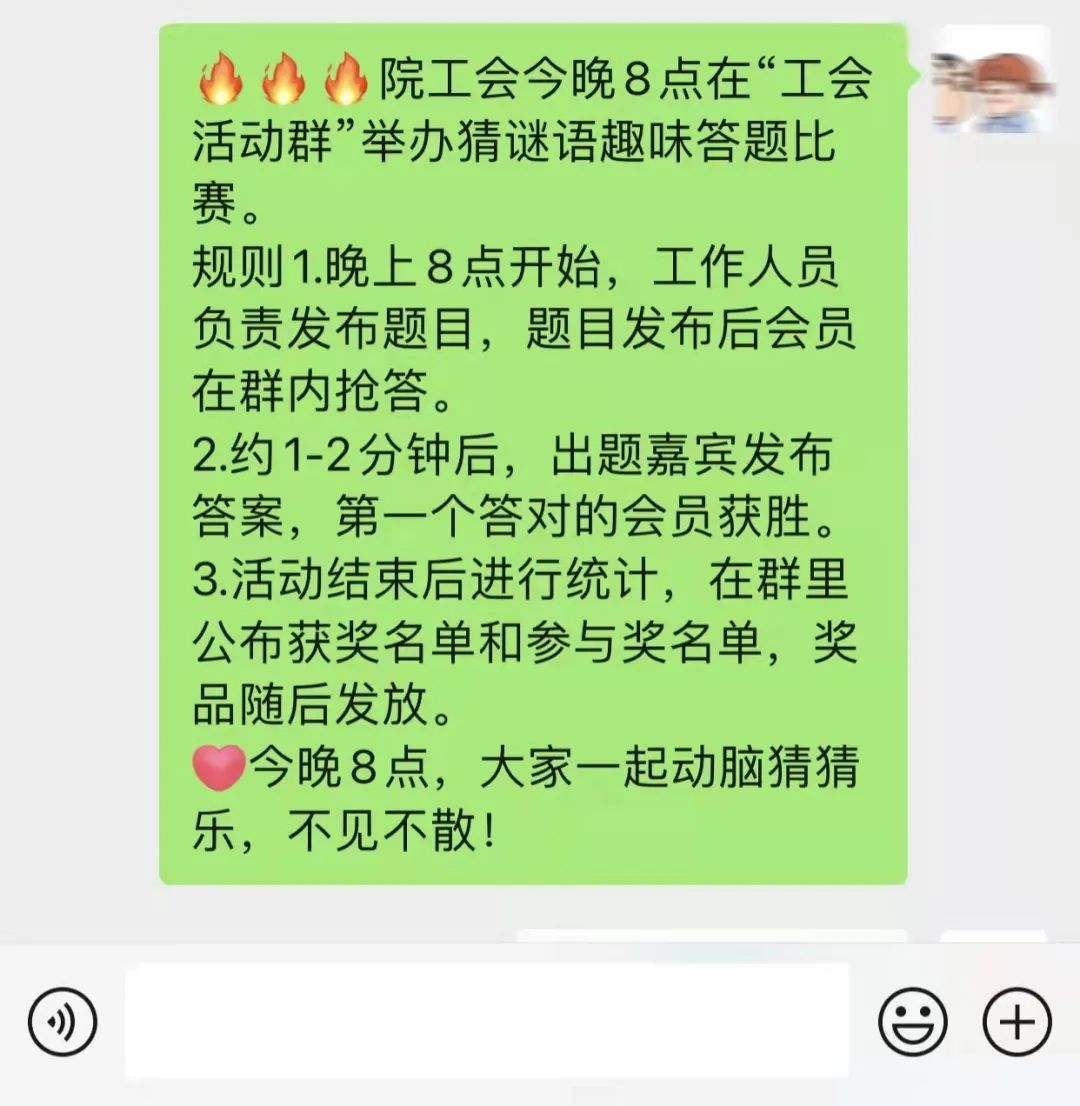 阳春三月,乍暖还寒中,数计学院的女教工们又迎来了一年一度的“三八妇女节”。为庆祝“三八”女神节,院工会于3月7日晚8时举行线上猜谜语趣味答题比赛。
