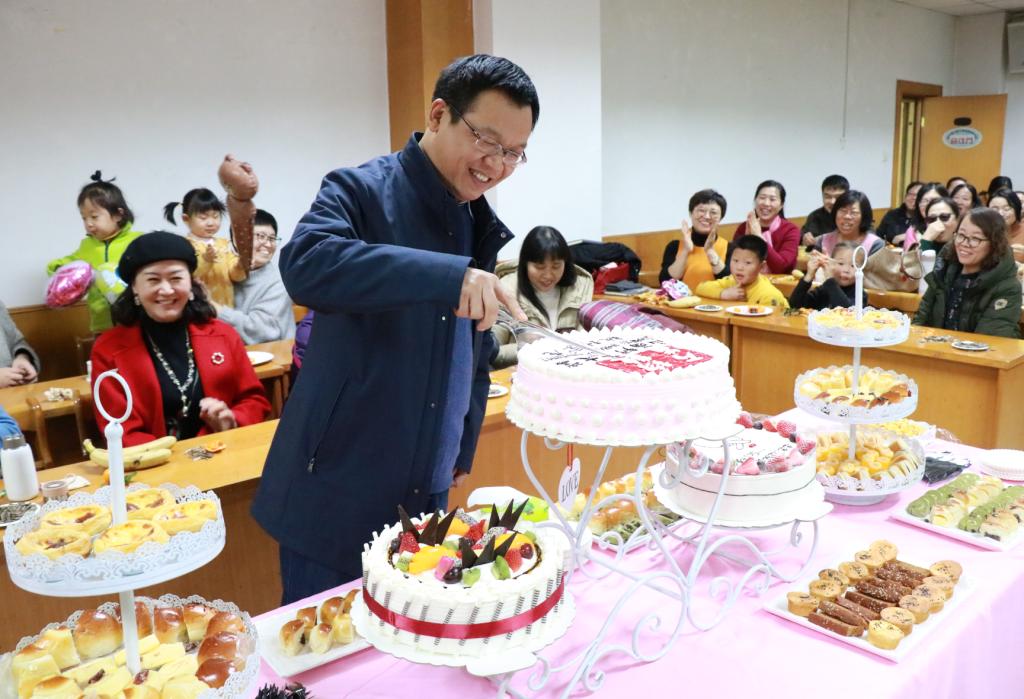 郝红霞书记和史建红院长共同切蛋糕,精心设计的蛋糕上分别写着“万物皆数”、“念念不忘,必有回响——SCI+基金”等字样,在甜美中蕴含着数学文化和老师们的新年心愿。老师们先后登台表演节目。小朋友们也带来了精彩的节目:T台走秀、葫芦丝和歌曲《新年好》,增添了喜庆,显示了数计大家庭的团结有爱。