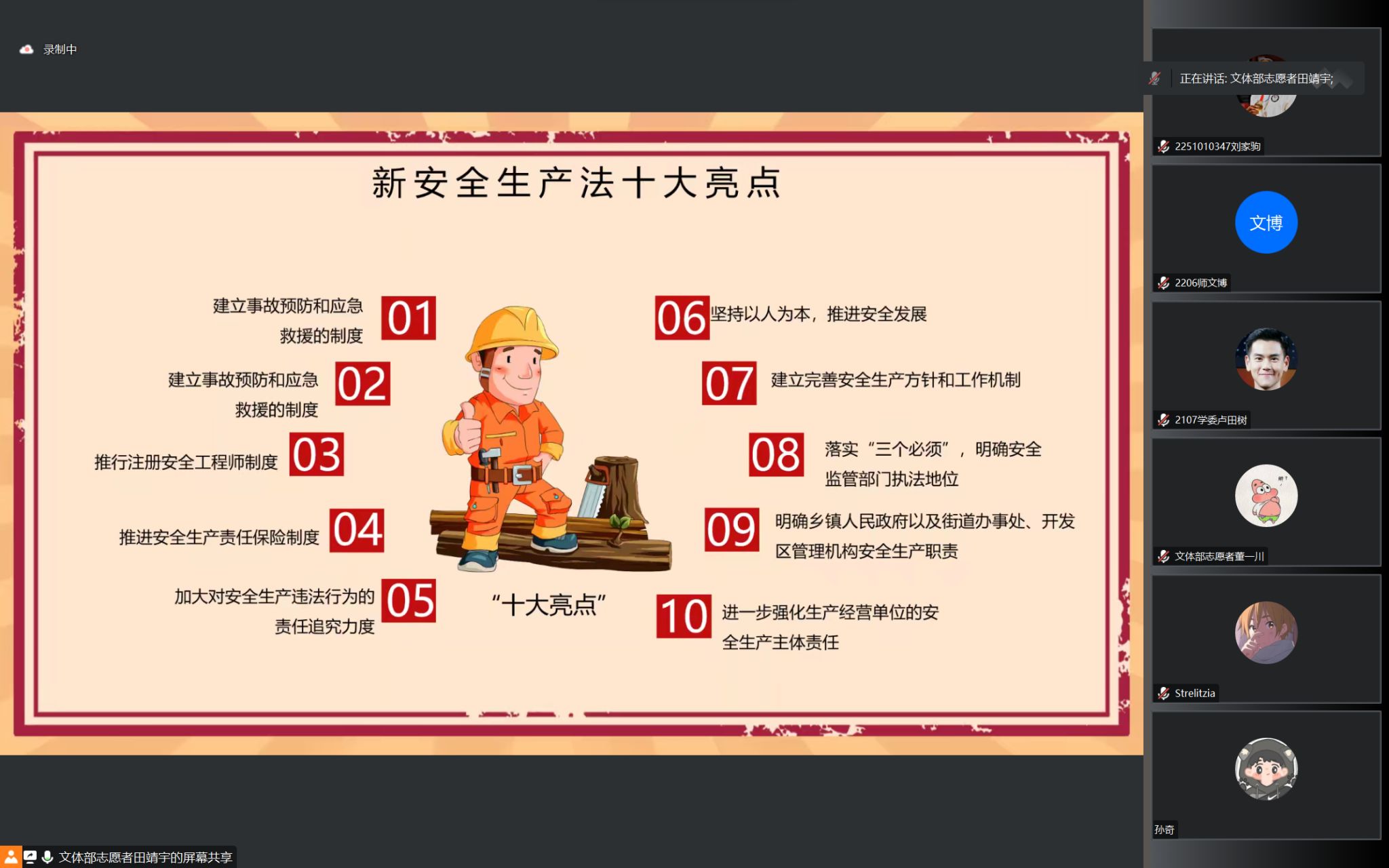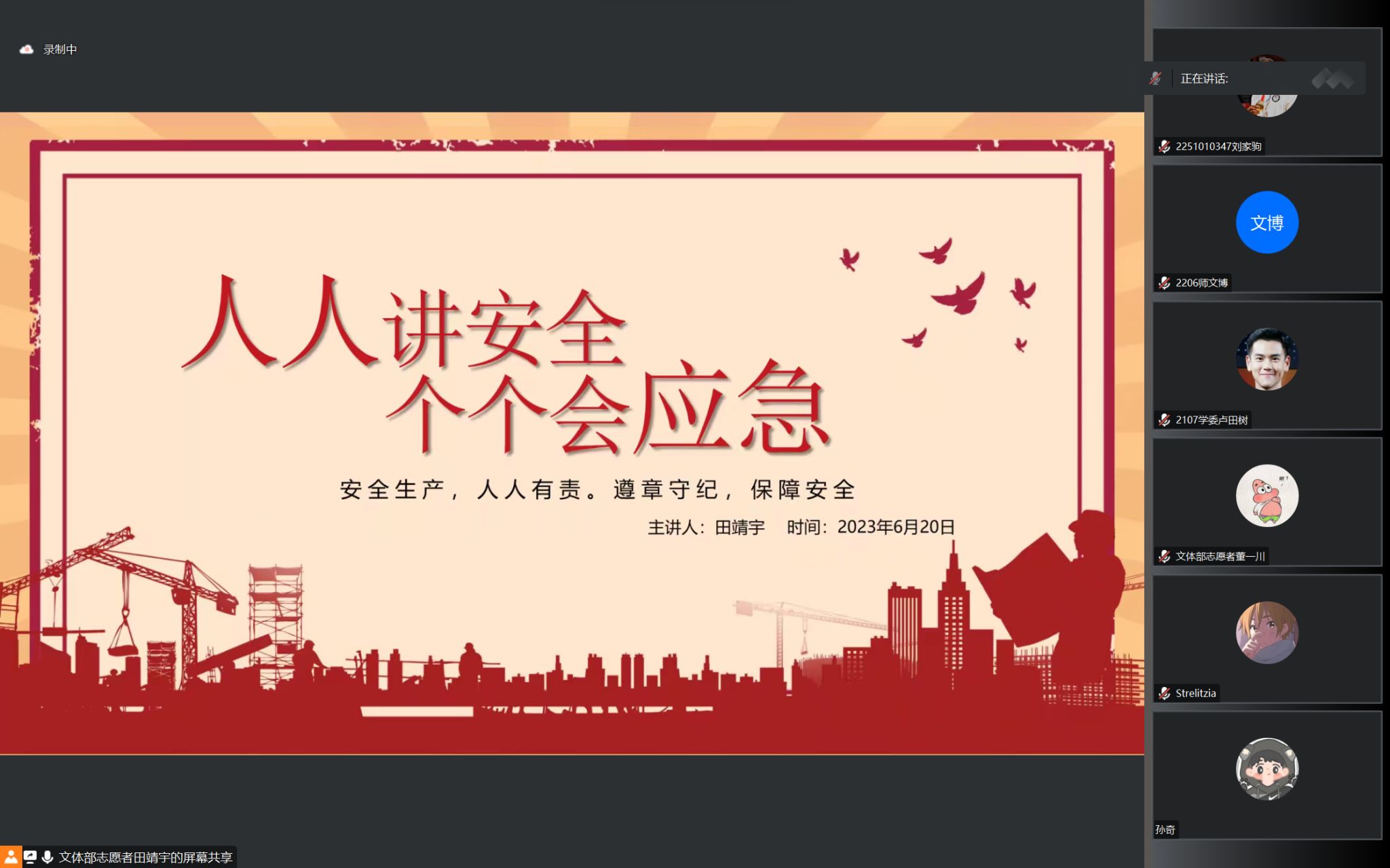 为深入宣传贯彻落实习近平总书记关于安全生产的重要论述精神,全面普及安全知识,提高我院学子的防范意识与应急能力,数计院于6月20日在线上举办了“人人讲安全,个个会应急”宣讲会。