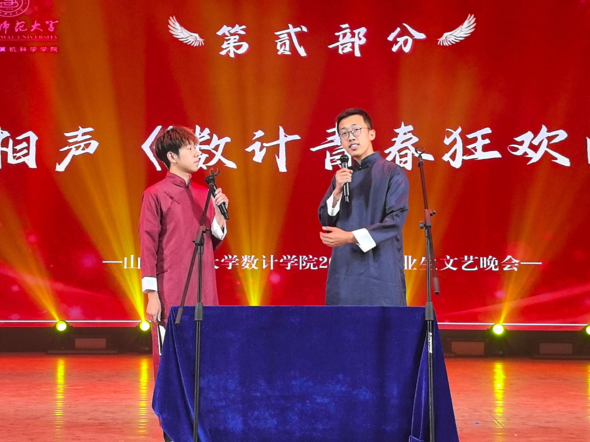 安院长向同学们送上寄语,对毕业生们表示了衷心的祝福,期望他们能够保持对梦想的追求和热爱,在未来的道路上不断努力,创造更加辉煌的人生。相声《数计青春狂想曲》以幽默语言展现数计学院学生的校园生活;歌曲《推开世界的门》旋律温暖,饱含对毕业生迎接新挑战的美好祝愿;幕布剧《心动方程式》则以新颖形式演绎校园心动瞬间;歌曲《思念是一种病》,那富有磁性的嗓音瞬间抓住每一个听众的心。
